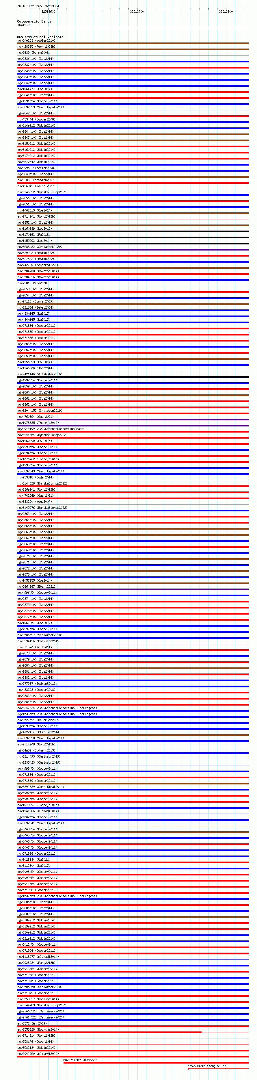 Variant DetailsVariant: essv6867794| Internal ID | 10264496 | | Landmark | | | Location Information | | | Cytoband | 16p11.2 | | Allele length | | Assembly | Allele length | | hg38 | 260 | | hg19 | 260 |