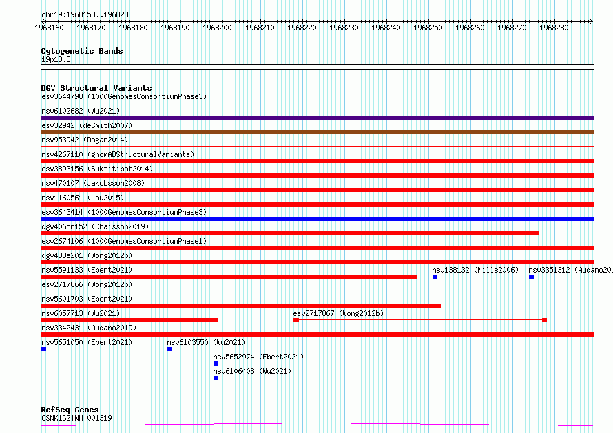 Variant DetailsVariant: essv6868352| Internal ID | 10264999 | | Landmark | | | Location Information | | | Cytoband | 19p13.3 | | Allele length | | Assembly | Allele length | | hg38 | 131 | | hg19 | 131 |