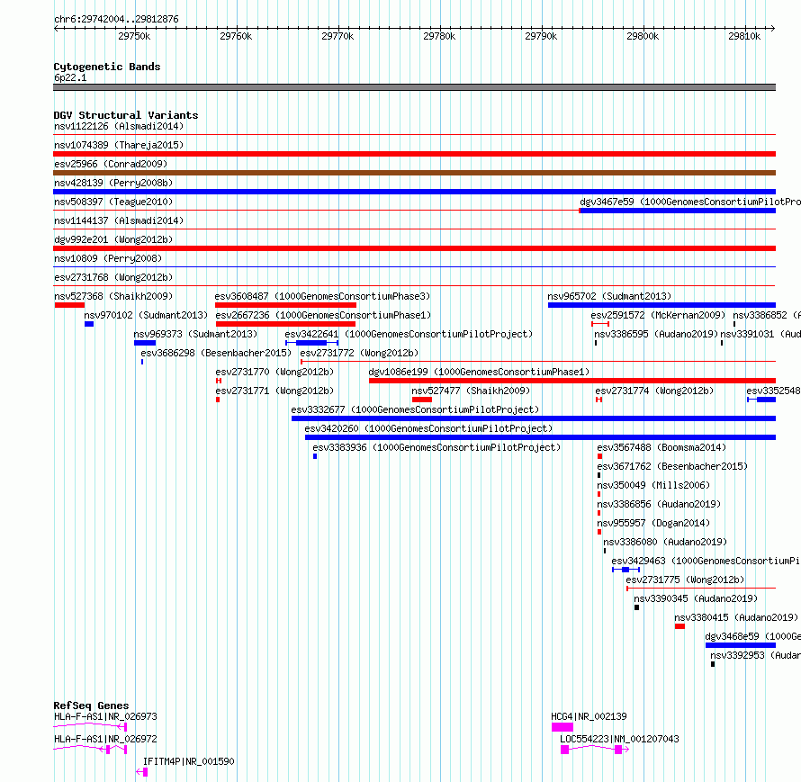 Variant DetailsVariant: essv6869626| Internal ID | 9919461 | | Landmark | | | Location Information | | | Cytoband | 6p22.1 | | Allele length | | Assembly | Allele length | | hg38 | 70873 | | hg19 | 70873 |