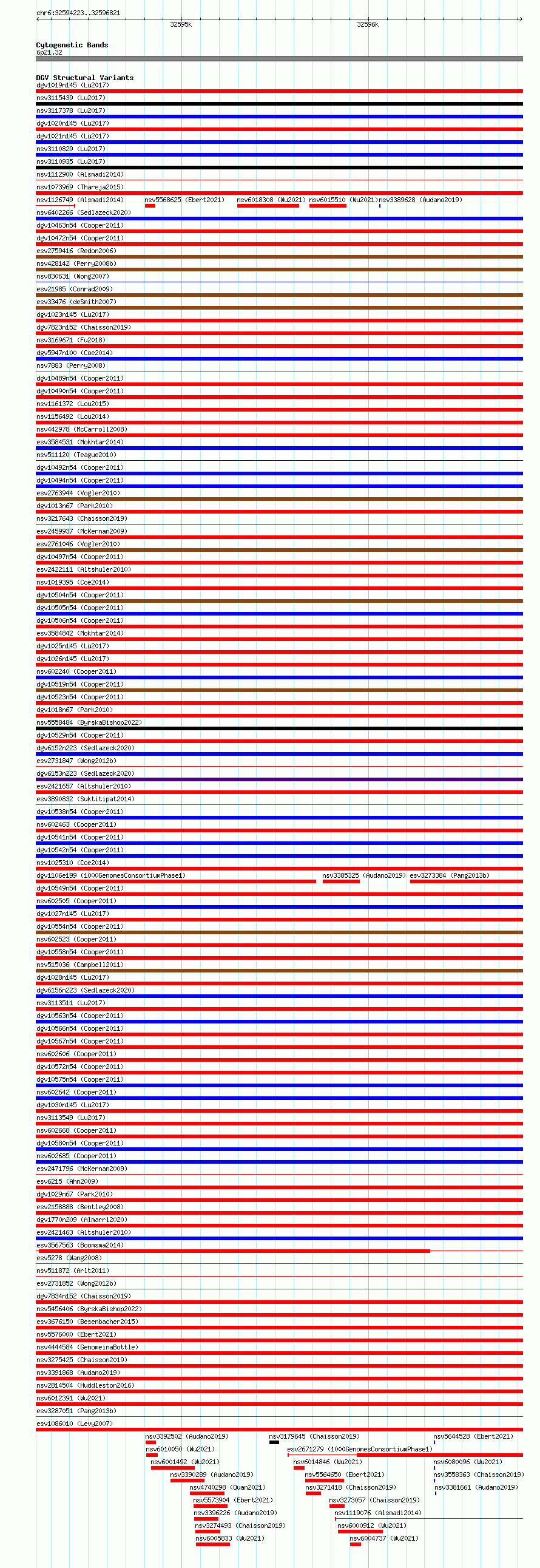 Variant DetailsVariant: essv6869740| Internal ID | 10266249 | | Landmark | | | Location Information | | | Cytoband | 6p21.32 | | Allele length | | Assembly | Allele length | | hg38 | 2599 | | hg19 | 2599 |