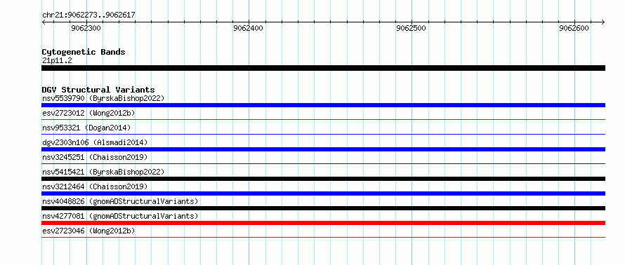Variant DetailsVariant: essv6871618| Internal ID | 10267940 | | Landmark | | | Location Information | | | Cytoband | 21p11.2 | | Allele length | | Assembly | Allele length | | hg38 | 345 | | hg19 | 345 |