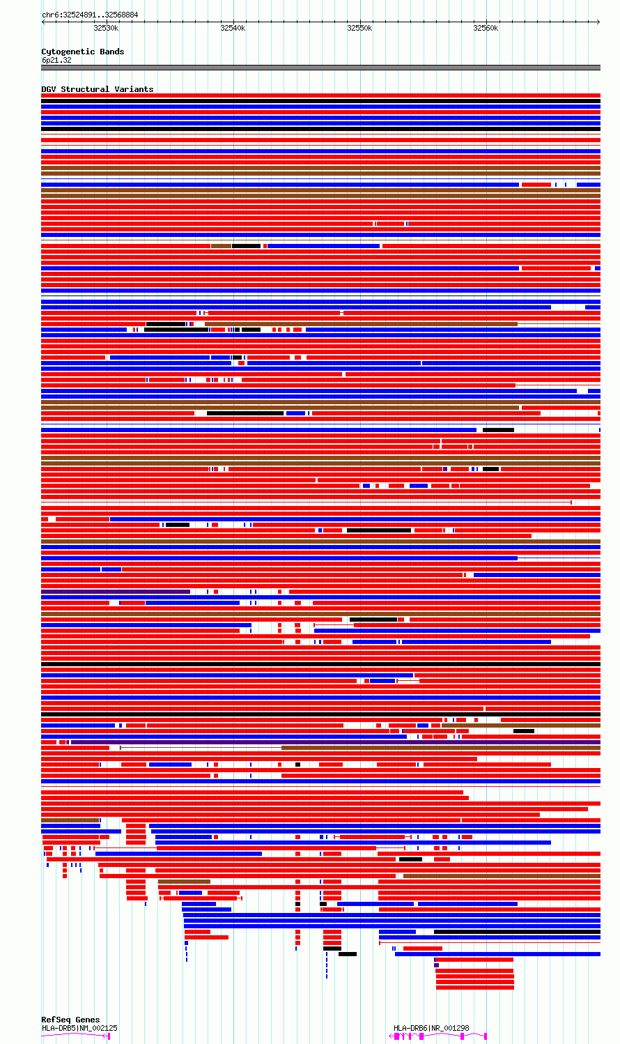 Variant DetailsVariant: essv6872719| Internal ID | 10268930 | | Landmark | | | Location Information | | | Cytoband | 6p21.32 | | Allele length | | Assembly | Allele length | | hg38 | 43994 | | hg19 | 43994 |
