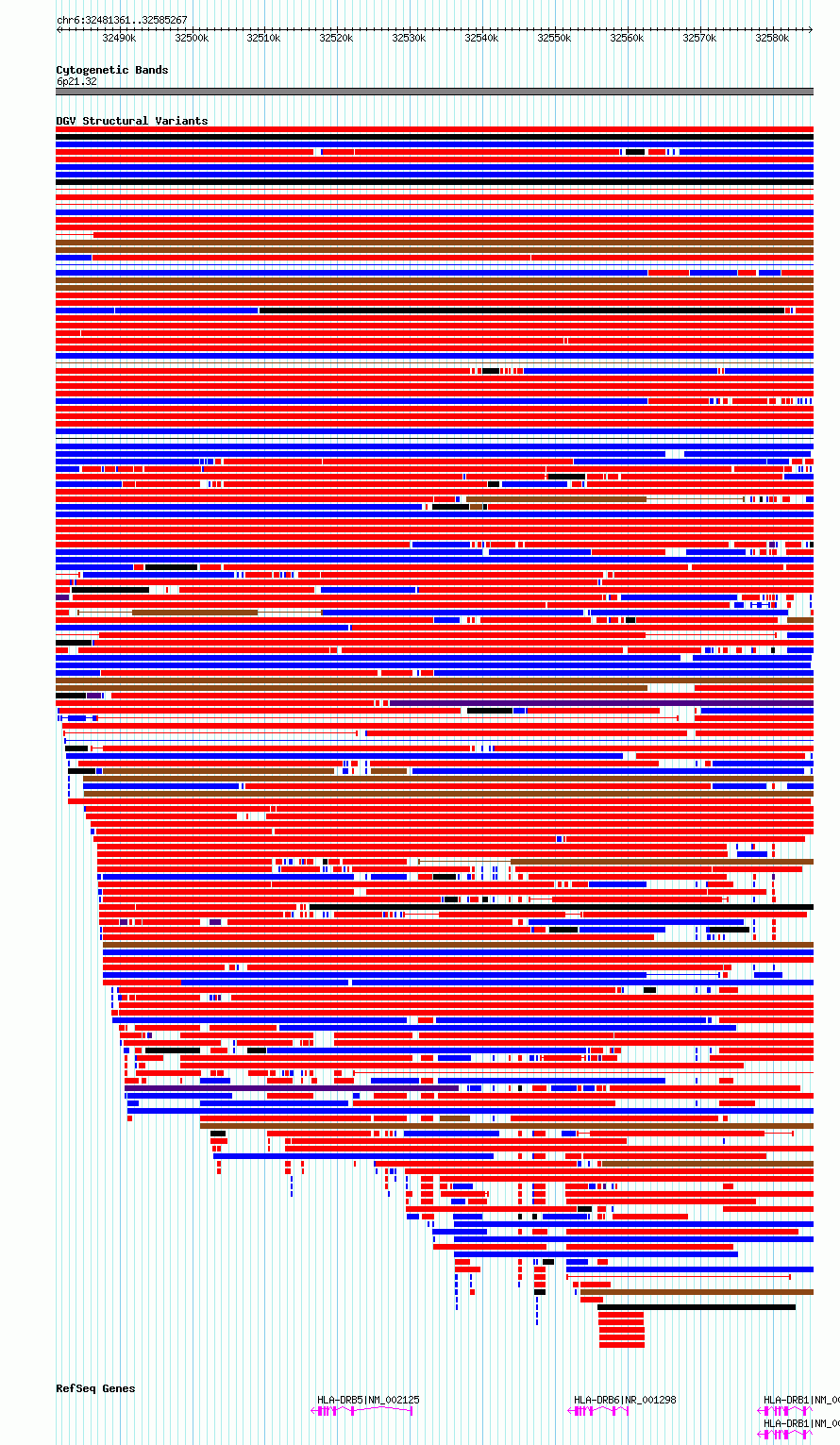 Variant DetailsVariant: essv6872721| Internal ID | 10268931 | | Landmark | | | Location Information | | | Cytoband | 6p21.32 | | Allele length | | Assembly | Allele length | | hg38 | 103907 | | hg19 | 103907 |