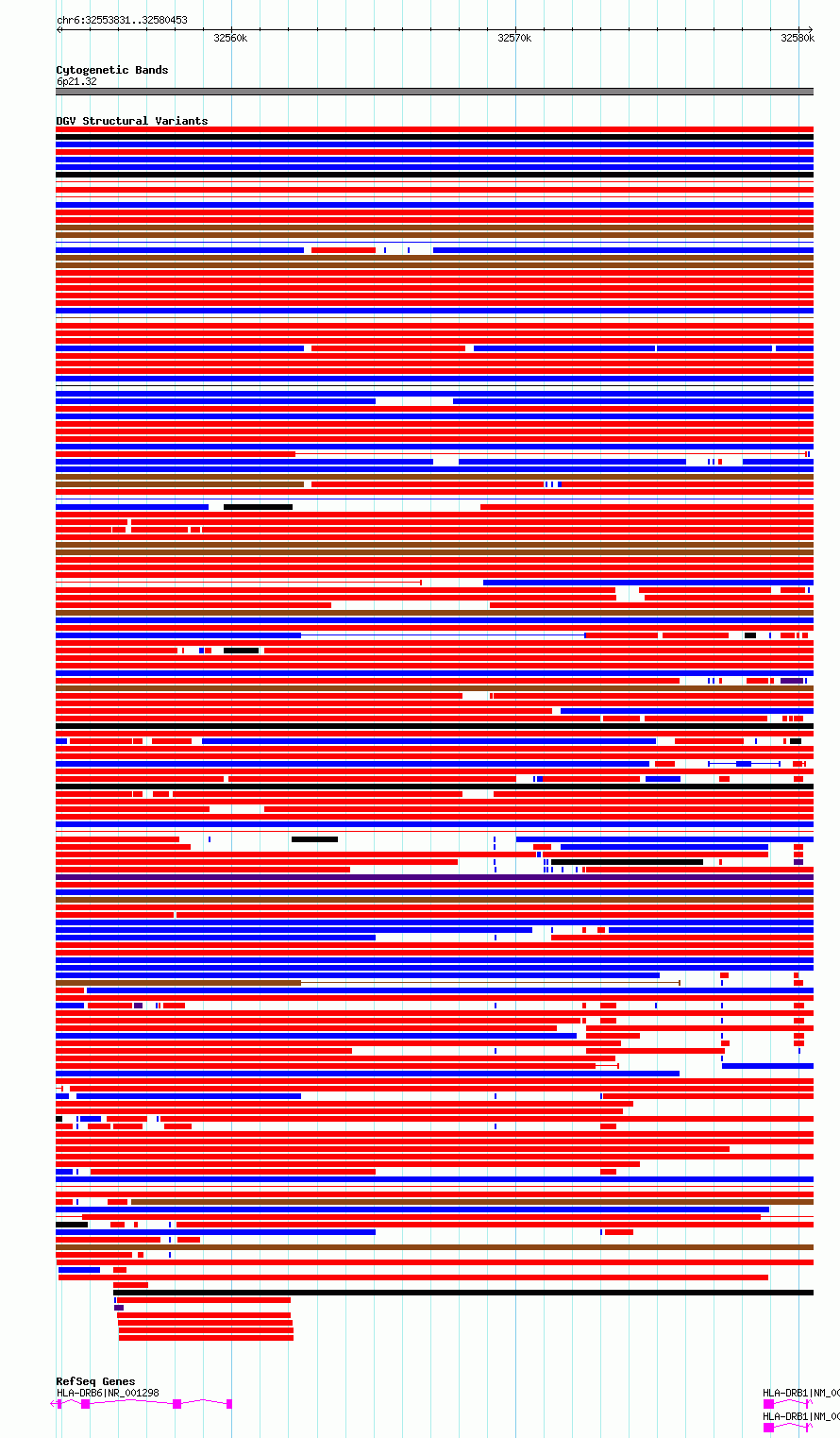 Variant DetailsVariant: essv6872739| Internal ID | 10268948 | | Landmark | | | Location Information | | | Cytoband | 6p21.32 | | Allele length | | Assembly | Allele length | | hg38 | 26623 | | hg19 | 26623 |