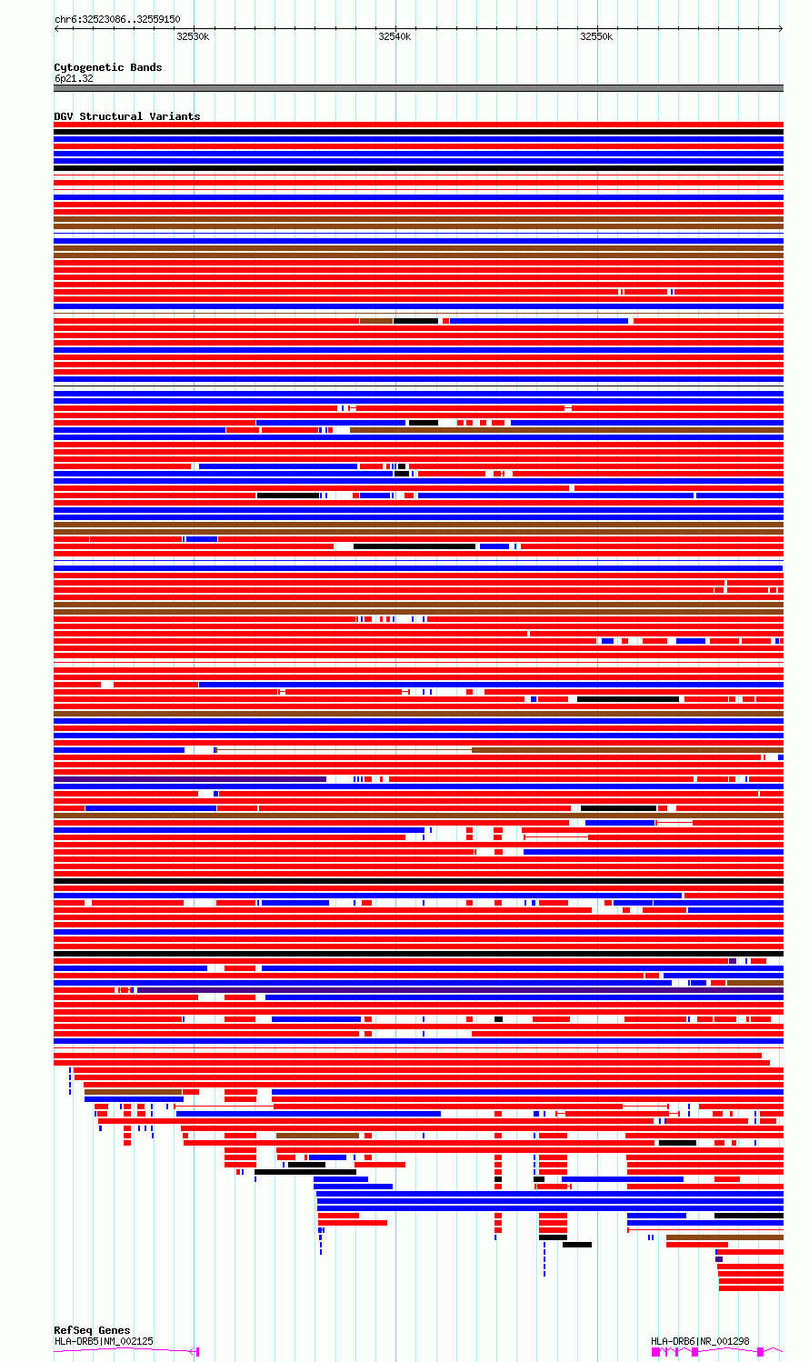 Variant DetailsVariant: essv6872747| Internal ID | 10268955 | | Landmark | | | Location Information | | | Cytoband | 6p21.32 | | Allele length | | Assembly | Allele length | | hg38 | 36065 | | hg19 | 36065 |