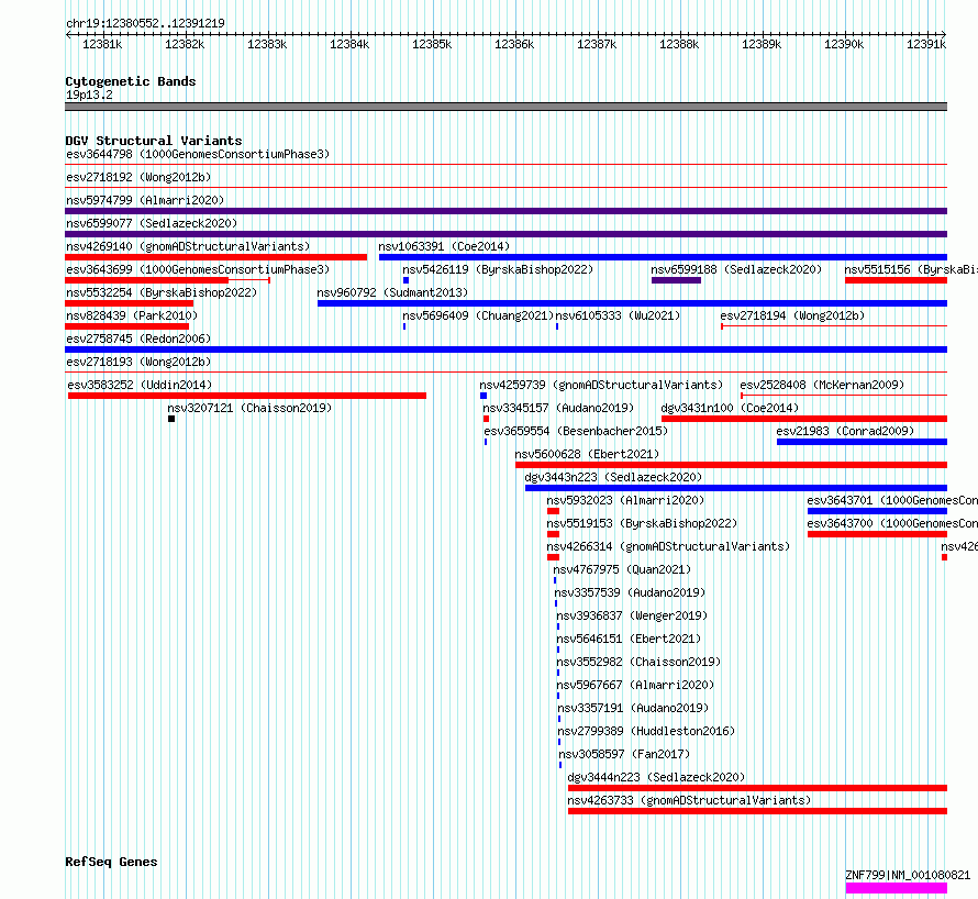 Variant DetailsVariant: essv6874412| Internal ID | 10270452 | | Landmark | | | Location Information | | | Cytoband | 19p13.2 | | Allele length | | Assembly | Allele length | | hg38 | 10668 | | hg19 | 10668 |