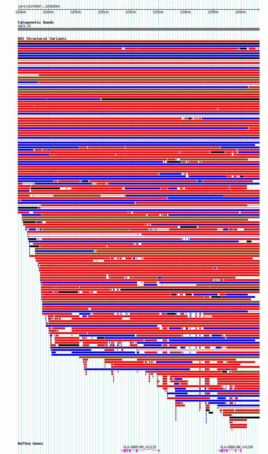 Variant DetailsVariant: essv6875669| Internal ID | 10271585 | | Landmark | | | Location Information | | | Cytoband | 6p21.32 | | Allele length | | Assembly | Allele length | | hg38 | 87688 | | hg19 | 87688 |