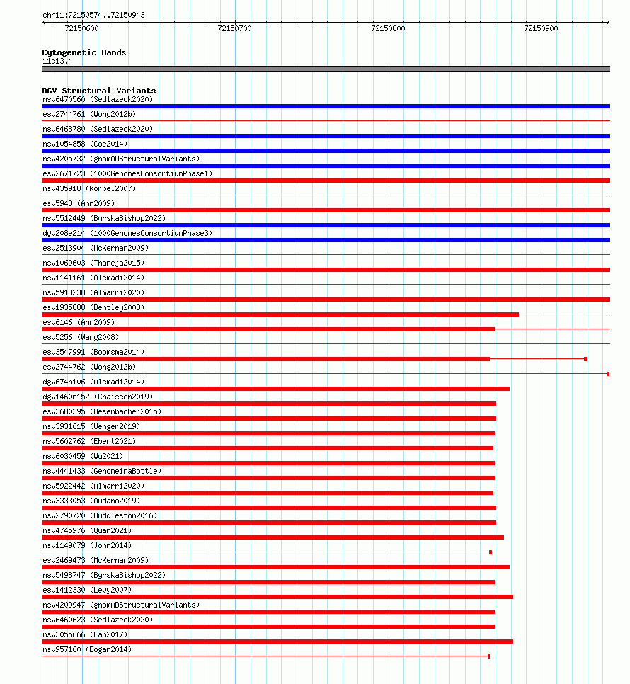 Variant DetailsVariant: essv6876572| Internal ID | 10272396 | | Landmark | | | Location Information | | | Cytoband | 11q13.4 | | Allele length | | Assembly | Allele length | | hg38 | 370 | | hg19 | 370 |