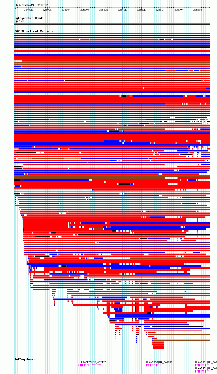 Variant DetailsVariant: essv6878614| Internal ID | 10274234 | | Landmark | | | Location Information | | | Cytoband | 6p21.32 | | Allele length | | Assembly | Allele length | | hg38 | 103768 | | hg19 | 103768 |