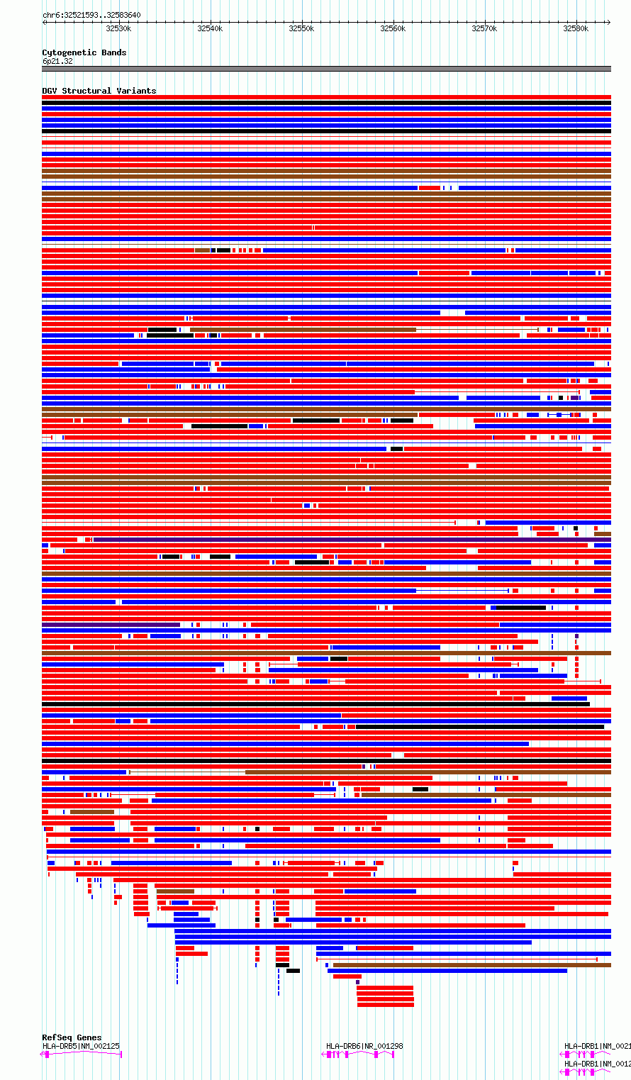 Variant DetailsVariant: essv6878622| Internal ID | 10274241 | | Landmark | | | Location Information | | | Cytoband | 6p21.32 | | Allele length | | Assembly | Allele length | | hg38 | 62048 | | hg19 | 62048 |