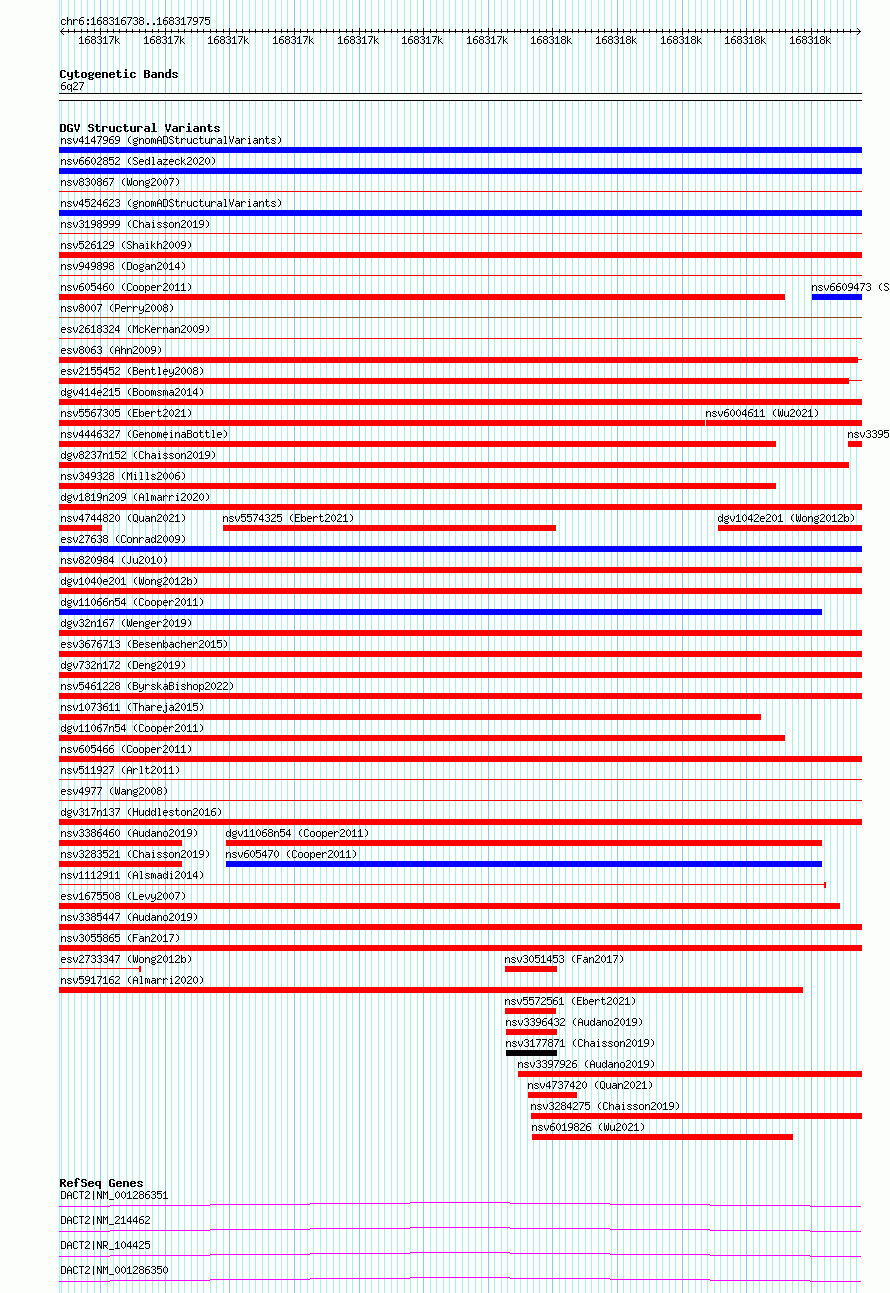 Variant DetailsVariant: essv6878726| Internal ID | 10274335 | | Landmark | | | Location Information | | | Cytoband | 6q27 | | Allele length | | Assembly | Allele length | | hg38 | 1238 | | hg19 | 1238 |