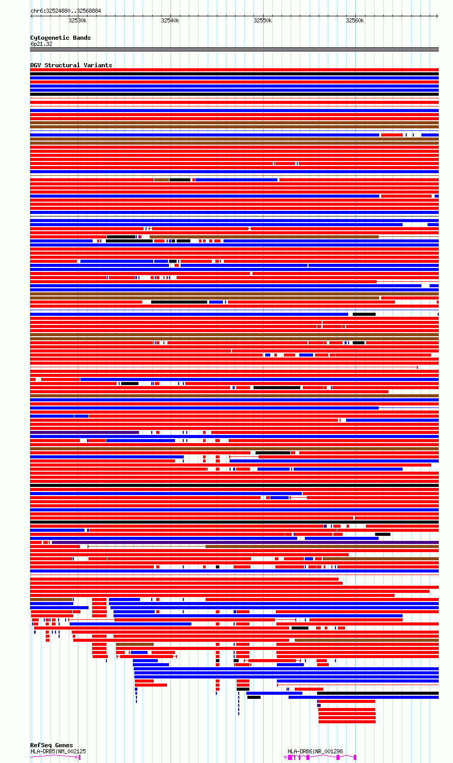 Variant DetailsVariant: essv6881391| Internal ID | 10276734 | | Landmark | | | Location Information | | | Cytoband | 6p21.32 | | Allele length | | Assembly | Allele length | | hg38 | 44005 | | hg19 | 44005 |