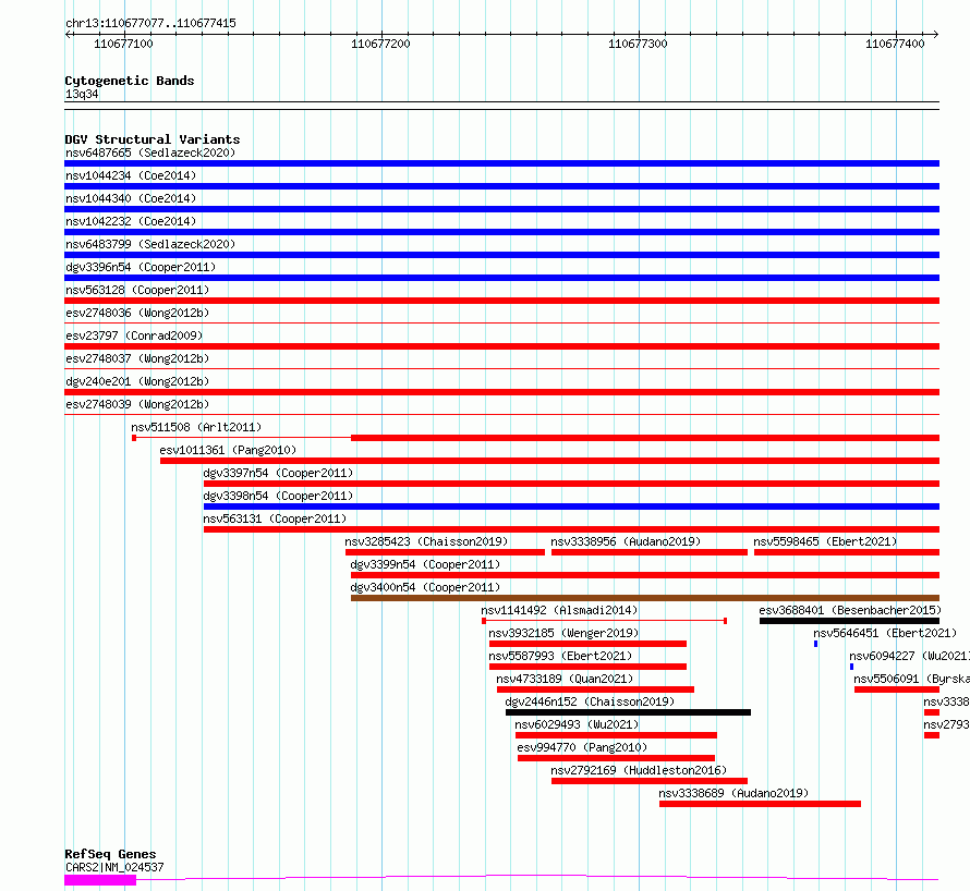 Variant DetailsVariant: essv6882490| Internal ID | 10277723 | | Landmark | | | Location Information | | | Cytoband | 13q34 | | Allele length | | Assembly | Allele length | | hg38 | 339 | | hg19 | 339 |