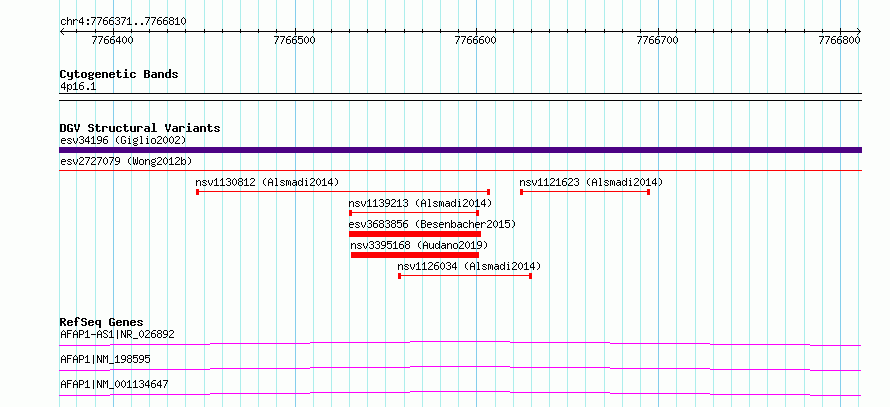 Variant DetailsVariant: essv6883791| Internal ID | 9932032 | | Landmark | | | Location Information | | | Cytoband | 4p16.1 | | Allele length | | Assembly | Allele length | | hg38 | 440 | | hg19 | 440 |