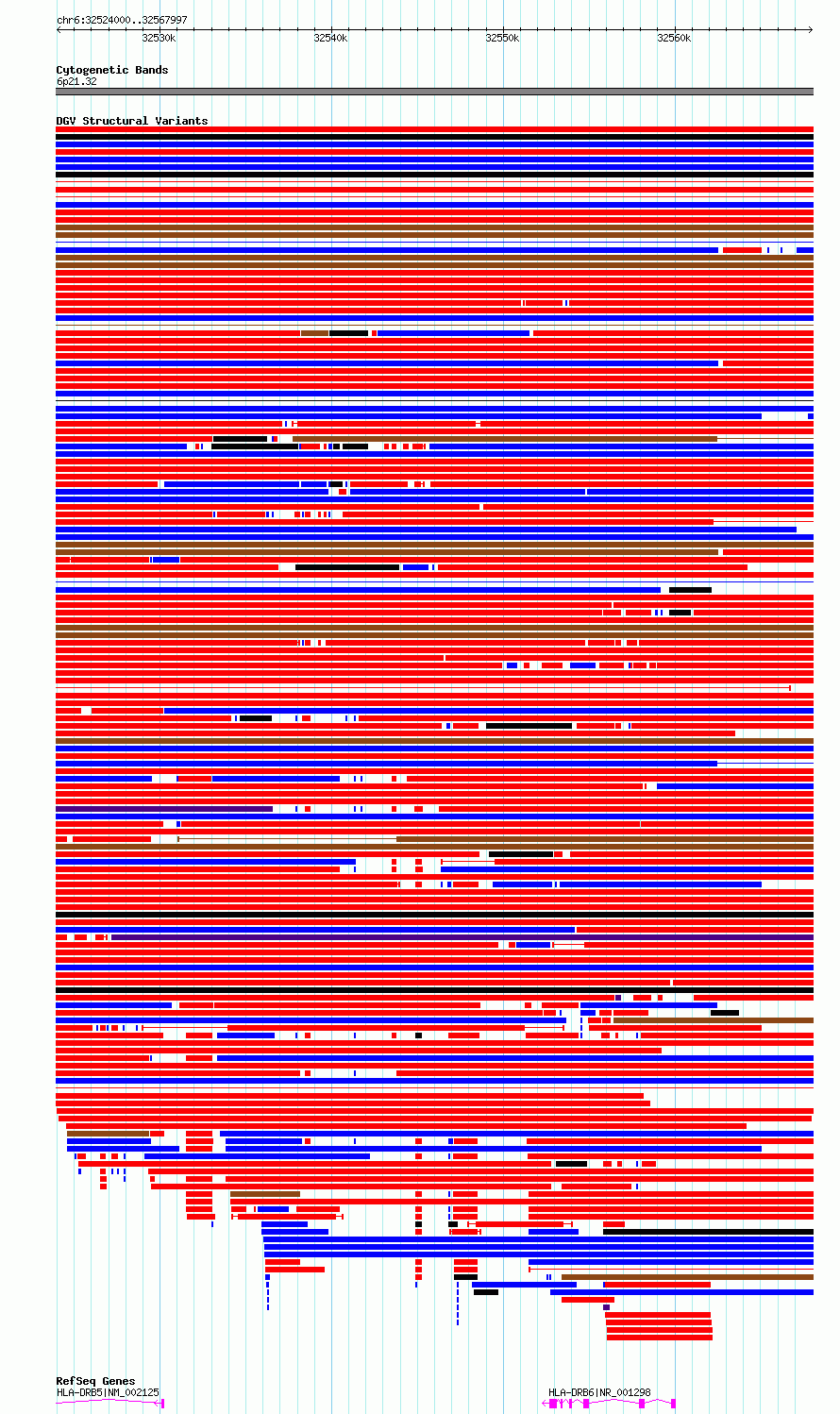 Variant DetailsVariant: essv6884191| Internal ID | 10279077 | | Landmark | | | Location Information | | | Cytoband | 6p21.32 | | Allele length | | Assembly | Allele length | | hg38 | 43998 | | hg19 | 43998 |