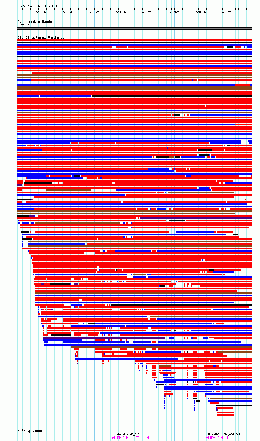 Variant DetailsVariant: essv6885708| Internal ID | 9986277 | | Landmark | | | Location Information | | | Cytoband | 6p21.32 | | Allele length | | Assembly | Allele length | | hg38 | 87682 | | hg19 | 87682 |