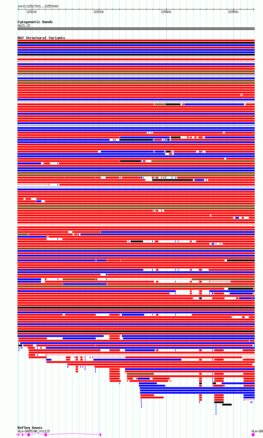 Variant DetailsVariant: essv6887041| Internal ID | 9986263 | | Landmark | | | Location Information | | | Cytoband | 6p21.32 | | Allele length | | Assembly | Allele length | | hg38 | 35160 | | hg19 | 35160 |