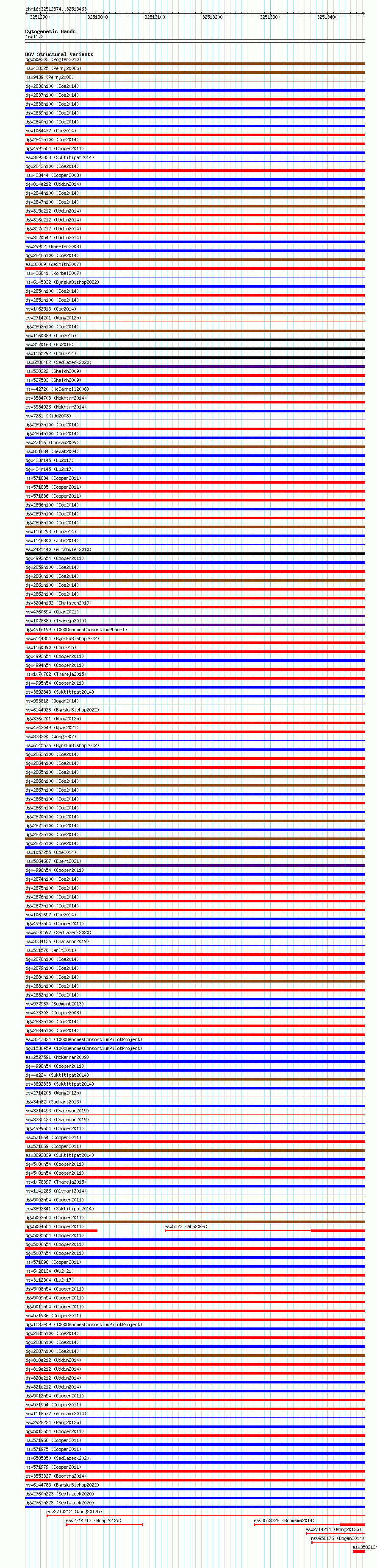 Variant DetailsVariant: essv6888386| Internal ID | 10283206 | | Landmark | | | Location Information | | | Cytoband | 16p11.2 | | Allele length | | Assembly | Allele length | | hg38 | 590 | | hg19 | 590 |