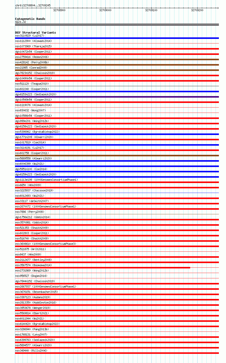 Variant DetailsVariant: essv6888932| Internal ID | 9986244 | | Landmark | | | Location Information | | | Cytoband | 6p21.32 | | Allele length | | Assembly | Allele length | | hg38 | 442 | | hg19 | 442 |