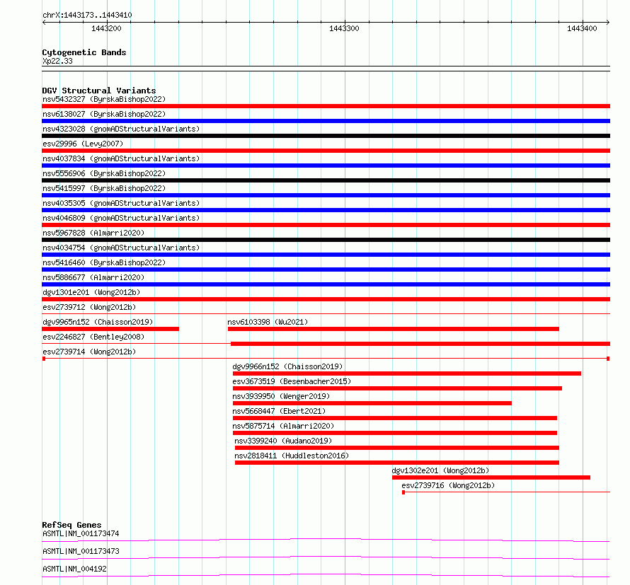 Variant DetailsVariant: essv6890608| Internal ID | 10285029 | | Landmark | | | Location Information | | | Cytoband | Xp22.33 | | Allele length | | Assembly | Allele length | | hg38 | 238 | | hg19 | 238 |
