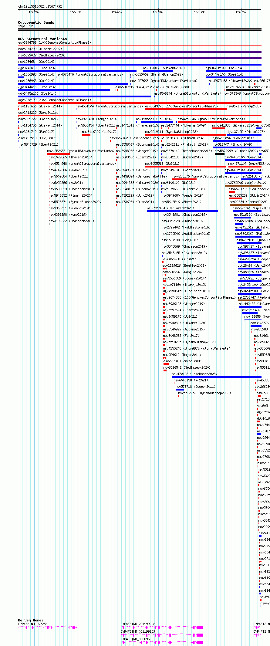 Variant DetailsVariant: essv6892078| Internal ID | 10286351 | | Landmark | | | Location Information | | | Cytoband | 19p13.12 | | Allele length | | Assembly | Allele length | | hg38 | 58711 | | hg19 | 58710 |