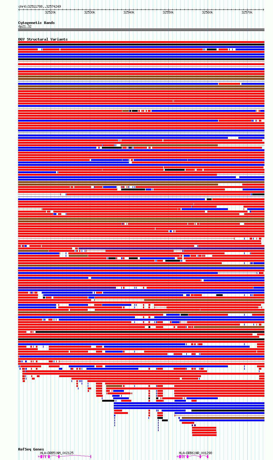 Variant DetailsVariant: essv6893511| Internal ID | 10287641 | | Landmark | | | Location Information | | | Cytoband | 6p21.32 | | Allele length | | Assembly | Allele length | | hg38 | 62462 | | hg19 | 62462 |