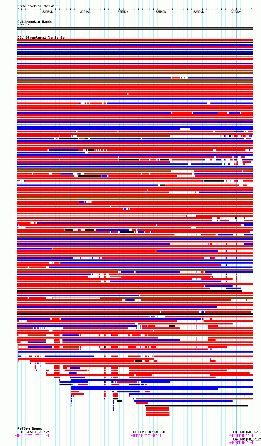 Variant DetailsVariant: essv6893518| Internal ID | 10287648 | | Landmark | | | Location Information | | | Cytoband | 6p21.32 | | Allele length | | Assembly | Allele length | | hg38 | 62207 | | hg19 | 62207 |