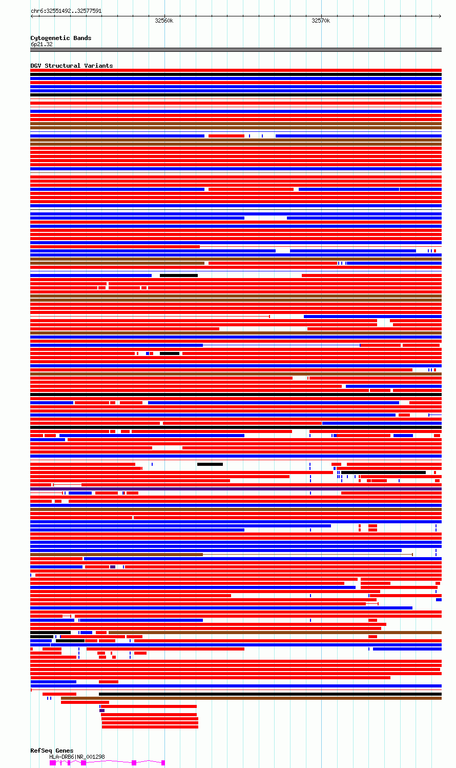Variant DetailsVariant: essv6893522| Internal ID | 10287651 | | Landmark | | | Location Information | | | Cytoband | 6p21.32 | | Allele length | | Assembly | Allele length | | hg38 | 26100 | | hg19 | 26100 |