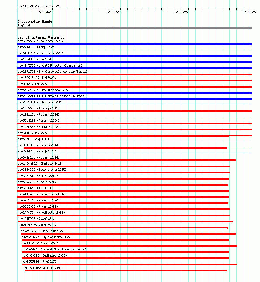 Variant DetailsVariant: essv6894560| Internal ID | 10288586 | | Landmark | | | Location Information | | | Cytoband | 11q13.4 | | Allele length | | Assembly | Allele length | | hg38 | 343 | | hg19 | 343 |