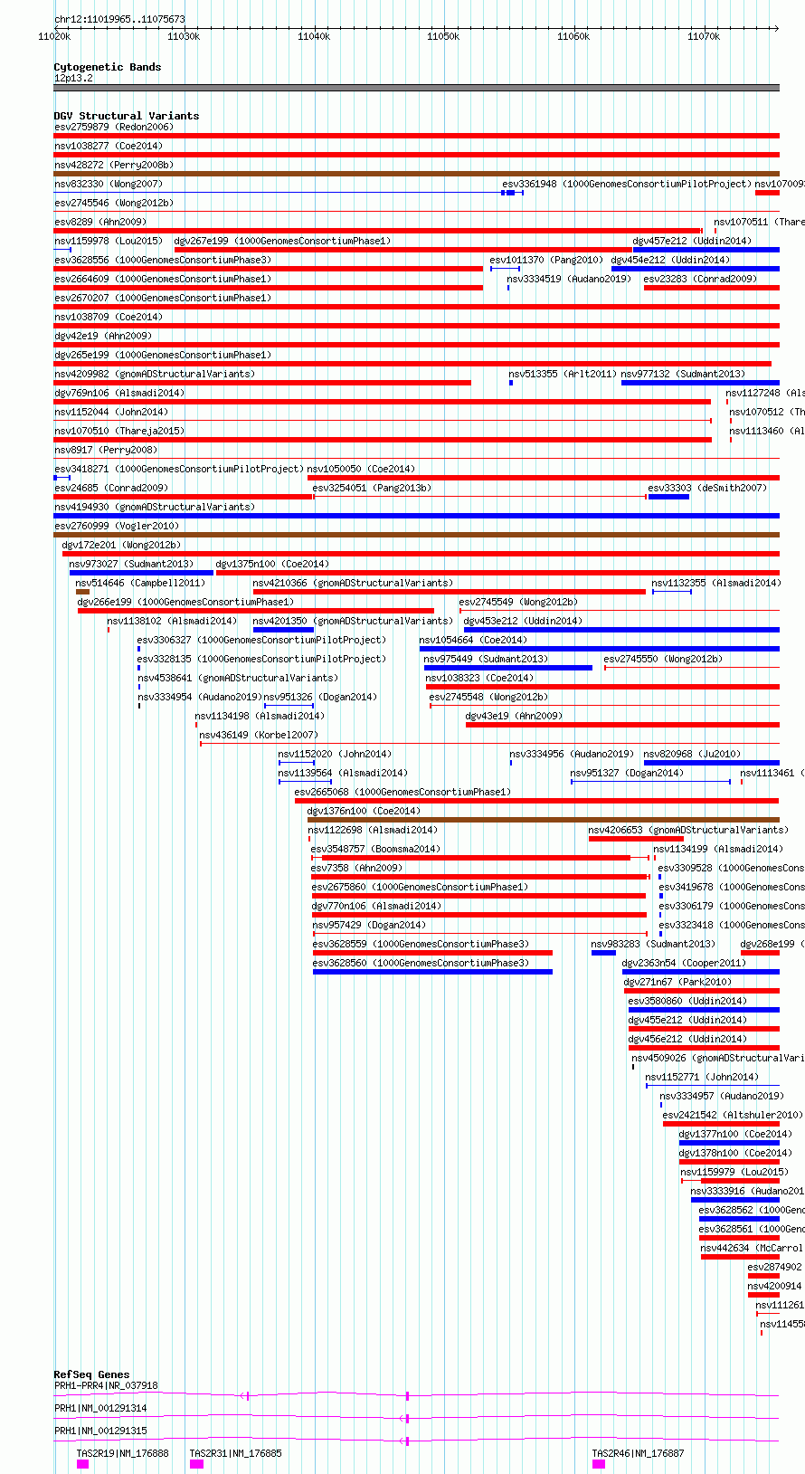 Variant DetailsVariant: essv6894630| Internal ID | 9941963 | | Landmark | | | Location Information | | | Cytoband | 12p13.2 | | Allele length | | Assembly | Allele length | | hg38 | 55709 | | hg19 | 55709 |