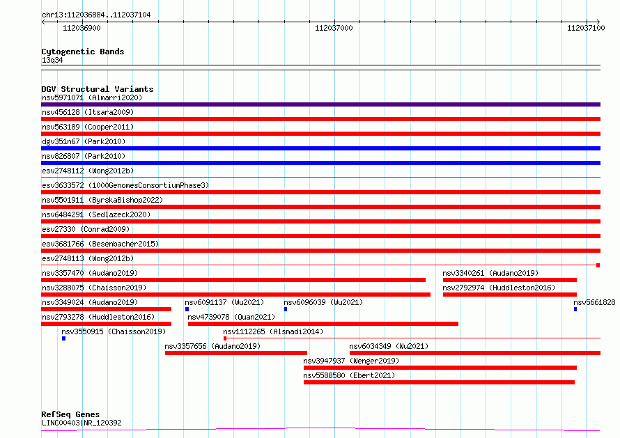 Variant DetailsVariant: essv6897810| Internal ID | 10291948 | | Landmark | | | Location Information | | | Cytoband | 13q34 | | Allele length | | Assembly | Allele length | | hg38 | 221 | | hg19 | 221 |