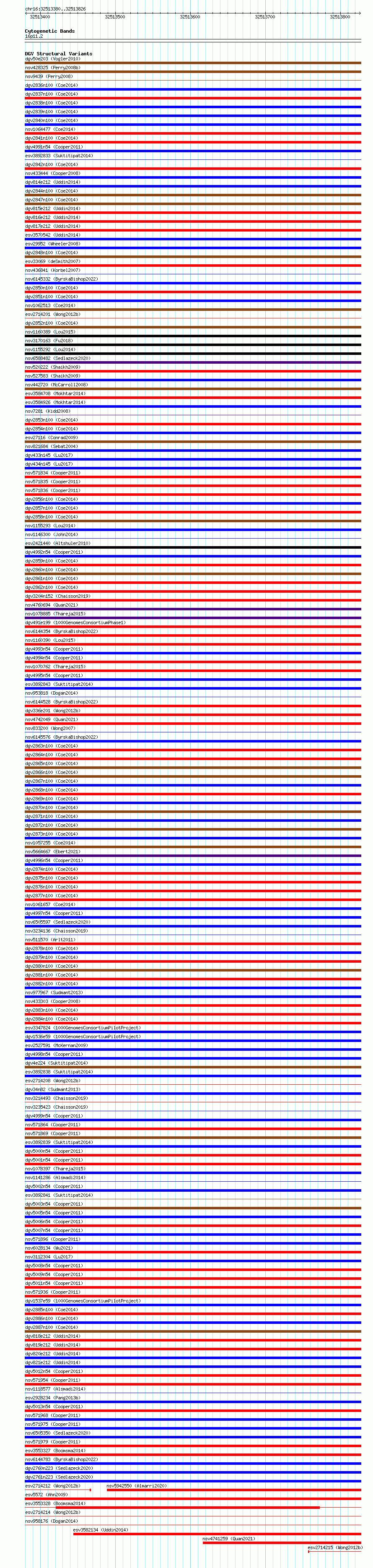 Variant DetailsVariant: essv6898011| Internal ID | 10292129 | | Landmark | | | Location Information | | | Cytoband | 16p11.2 | | Allele length | | Assembly | Allele length | | hg38 | 447 | | hg19 | 447 |