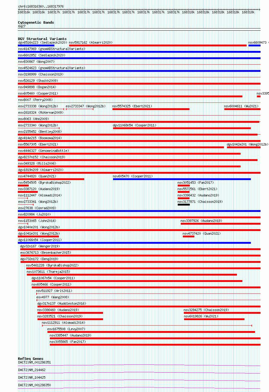 Variant DetailsVariant: essv6900265| Internal ID | 9986130 | | Landmark | | | Location Information | | | Cytoband | 6q27 | | Allele length | | Assembly | Allele length | | hg38 | 1617 | | hg19 | 1617 |