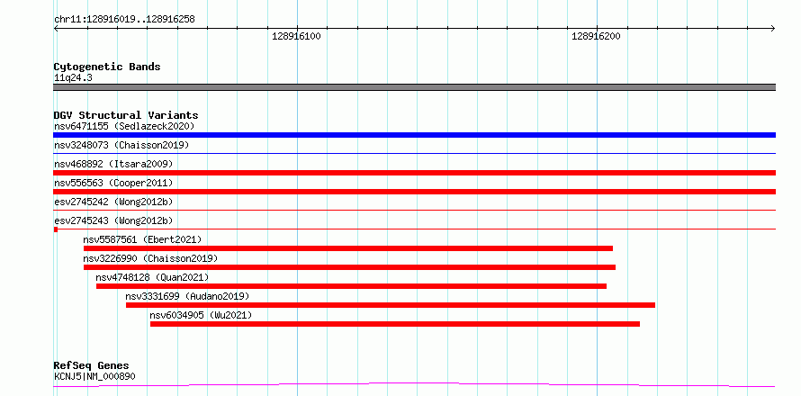 Variant DetailsVariant: essv6900600| Internal ID | 10294163 | | Landmark | | | Location Information | | | Cytoband | 11q24.3 | | Allele length | | Assembly | Allele length | | hg38 | 240 | | hg19 | 240 |