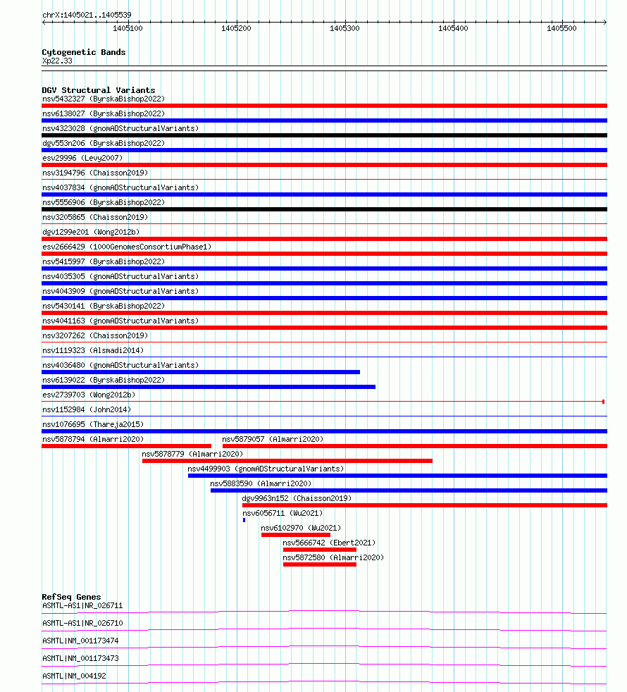 Variant DetailsVariant: essv6904162| Internal ID | 10015830 | | Landmark | | | Location Information | | | Cytoband | Xp22.33 | | Allele length | | Assembly | Allele length | | hg38 | 519 | | hg19 | 519 |