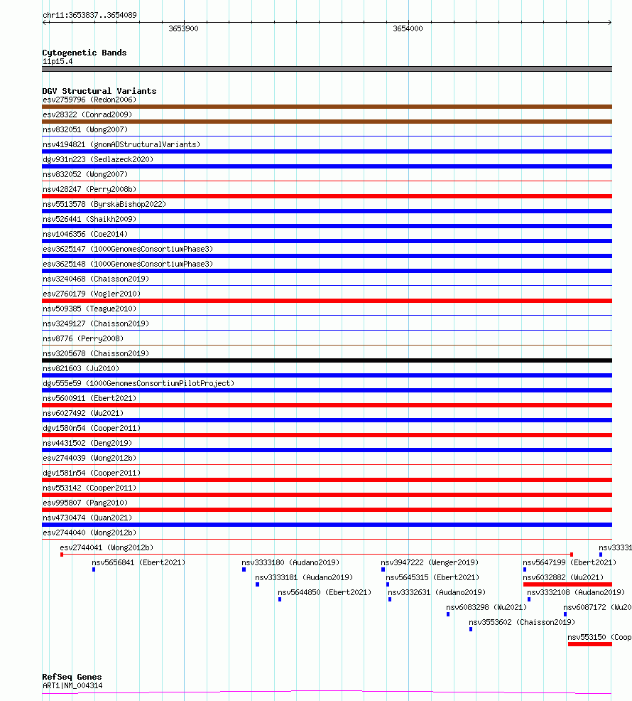 Variant DetailsVariant: essv6908666| Internal ID | 10018738 | | Landmark | | | Location Information | | | Cytoband | 11p15.4 | | Allele length | | Assembly | Allele length | | hg38 | 253 | | hg19 | 253 |