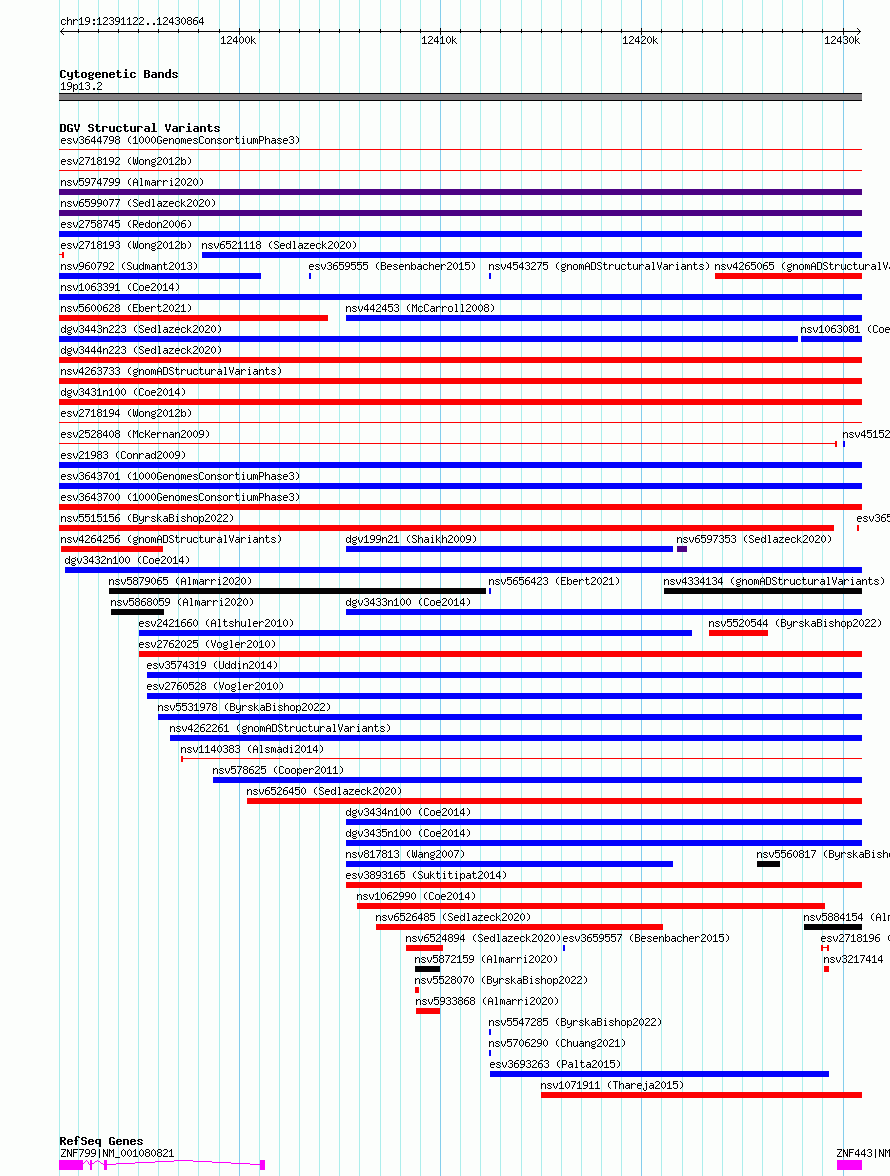 Variant DetailsVariant: essv6909757| Internal ID | 10017757 | | Landmark | | | Location Information | | | Cytoband | 19p13.2 | | Allele length | | Assembly | Allele length | | hg38 | 39743 | | hg19 | 39743 |
