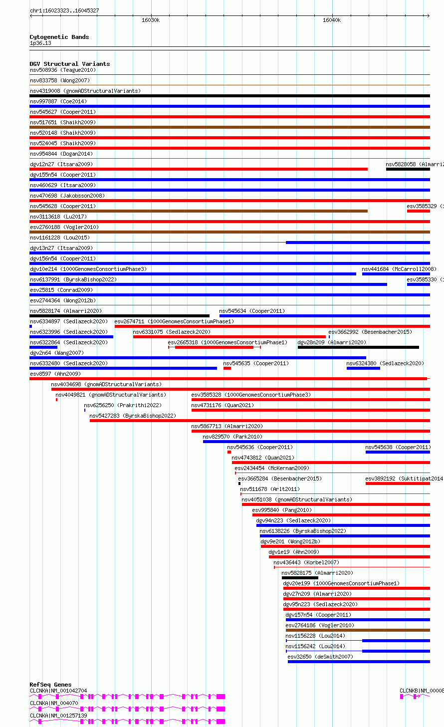 Variant DetailsVariant: essv6910042| Internal ID | 10023436 | | Landmark | | | Location Information | | | Cytoband | 1p36.13 | | Allele length | | Assembly | Allele length | | hg38 | 22005 | | hg19 | 22005 |