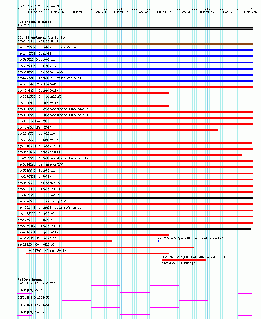 | | Variant Type | CNV deletion | | Copy Number | | | Allele State | | | Allele Origin | | | Probe Count | | | Validation Flag | | | Merged Status | S | | Merged Variants | esv2749724 | | Supporting Variants | | | Samples | SSM002 | | Known Genes | CCPG1, DYX1C1-CCPG1 | | Method | Sequencing | | Analysis | Breakdancer:4 times standard deviation,VariationHunter:4 times standard deviation and at least 3 supportting reads | | Platform | Illumina HiSeq 2000 | | Comments | | | Reference | Wong_et_al_2012b | | Pubmed ID | 23290073 | | Accession Number(s) | essv6911286