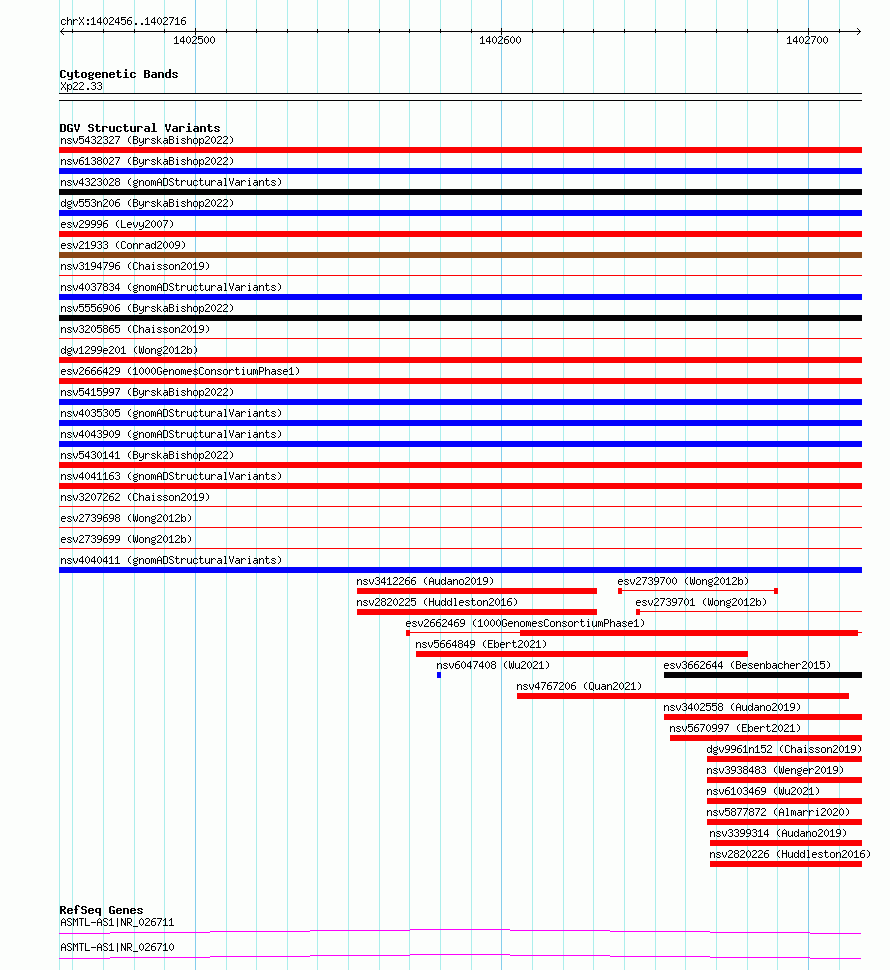 Variant DetailsVariant: essv6911782| Internal ID | 10022544 | | Landmark | | | Location Information | | | Cytoband | Xp22.33 | | Allele length | | Assembly | Allele length | | hg38 | 261 | | hg19 | 261 |