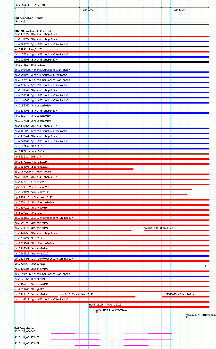 Variant DetailsVariant: essv6911788| Internal ID | 10022539 | | Landmark | | | Location Information | | | Cytoband | Xp22.33 | | Allele length | | Assembly | Allele length | | hg38 | 213 | | hg19 | 213 |