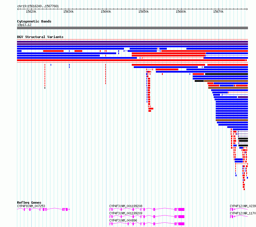 | | Variant Type | CNV deletion | | Copy Number | | | Allele State | | | Allele Origin | | | Probe Count | | | Validation Flag | | | Merged Status | S | | Merged Variants | esv2718235 | | Supporting Variants | | | Samples | SSM015 | | Known Genes | CYP4F12, CYP4F3, CYP4F8 | | Method | Sequencing | | Analysis | Breakdancer:4 times standard deviation,VariationHunter:4 times standard deviation and at least 3 supportting reads | | Platform | Illumina HiSeq 2000 | | Comments | | | Reference | Wong_et_al_2012b | | Pubmed ID | 23290073 | | Accession Number(s) | essv6913648