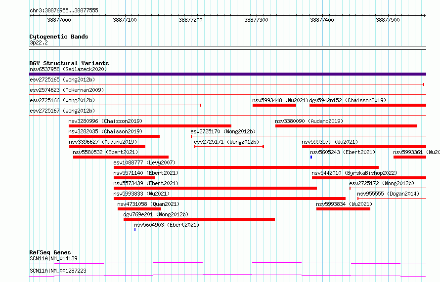 Variant DetailsVariant: essv6914435| Internal ID | 10025567 | | Landmark | | | Location Information | | | Cytoband | 3p22.2 | | Allele length | | Assembly | Allele length | | hg38 | 601 | | hg19 | 601 |