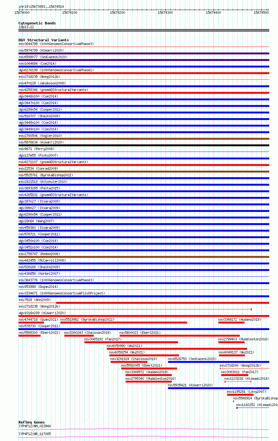 Variant DetailsVariant: essv6914485| Internal ID | 9984806 | | Landmark | | | Location Information | | | Cytoband | 19p13.12 | | Allele length | | Assembly | Allele length | | hg38 | 522 | | hg19 | 522 |