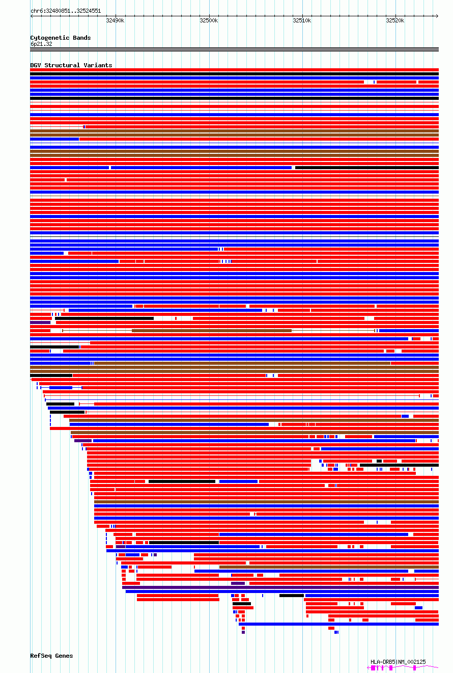 Variant DetailsVariant: essv6915043| Internal ID | 10026113 | | Landmark | | | Location Information | | | Cytoband | 6p21.32 | | Allele length | | Assembly | Allele length | | hg38 | 43701 | | hg19 | 43701 |