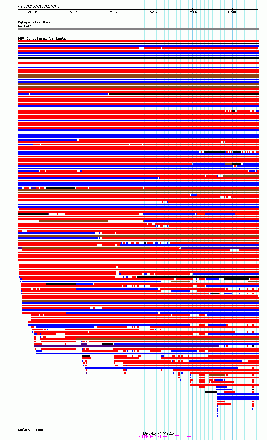 Variant DetailsVariant: essv6915045| Internal ID | 10026115 | | Landmark | | | Location Information | | | Cytoband | 6p21.32 | | Allele length | | Assembly | Allele length | | hg38 | 59773 | | hg19 | 59773 |
