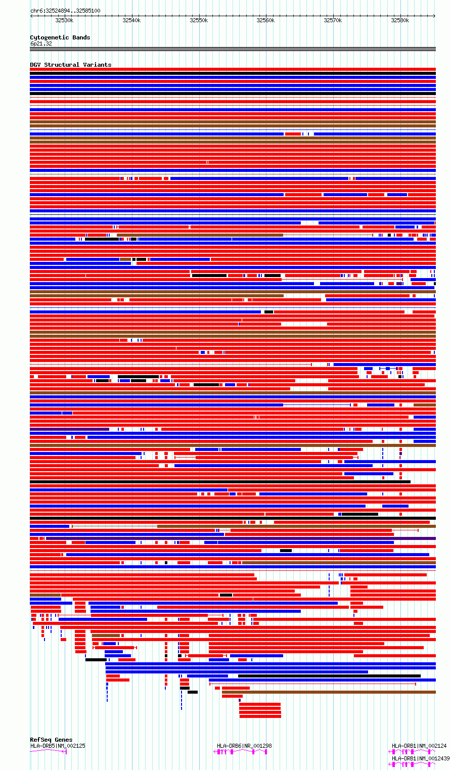 Variant DetailsVariant: essv6915056| Internal ID | 10026125 | | Landmark | | | Location Information | | | Cytoband | 6p21.32 | | Allele length | | Assembly | Allele length | | hg38 | 60207 | | hg19 | 60207 |