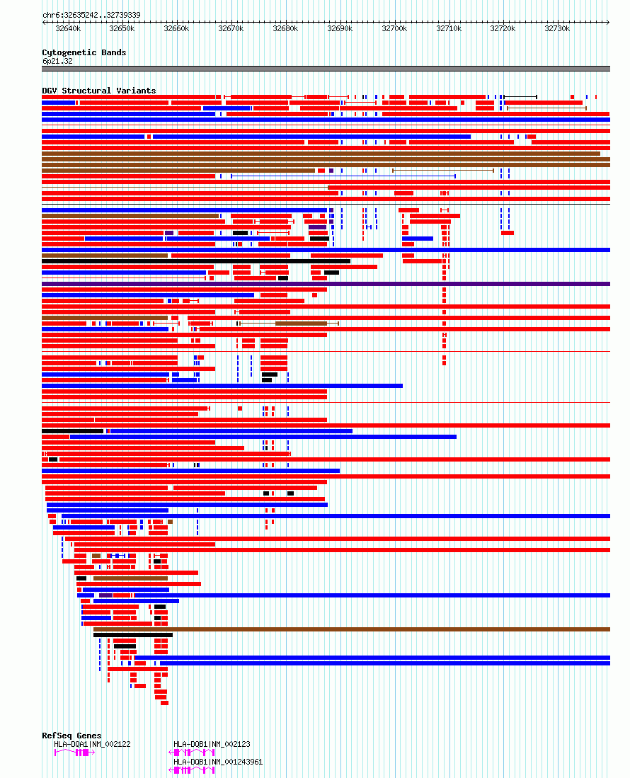 Variant DetailsVariant: essv6915077| Internal ID | 10026144 | | Landmark | | | Location Information | | | Cytoband | 6p21.32 | | Allele length | | Assembly | Allele length | | hg38 | 104098 | | hg19 | 104098 |