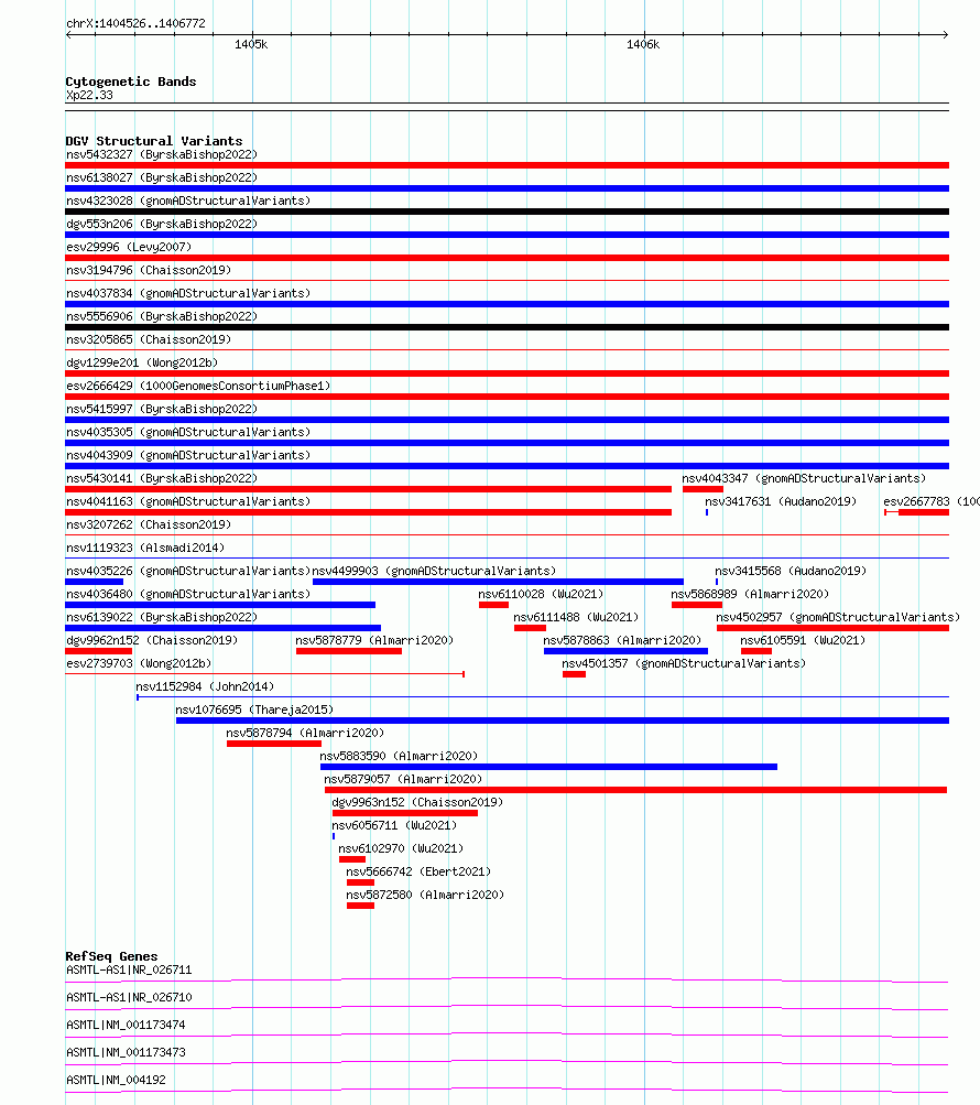 Variant DetailsVariant: essv6915480| Internal ID | 10026509 | | Landmark | | | Location Information | | | Cytoband | Xp22.33 | | Allele length | | Assembly | Allele length | | hg38 | 2247 | | hg19 | 2247 |