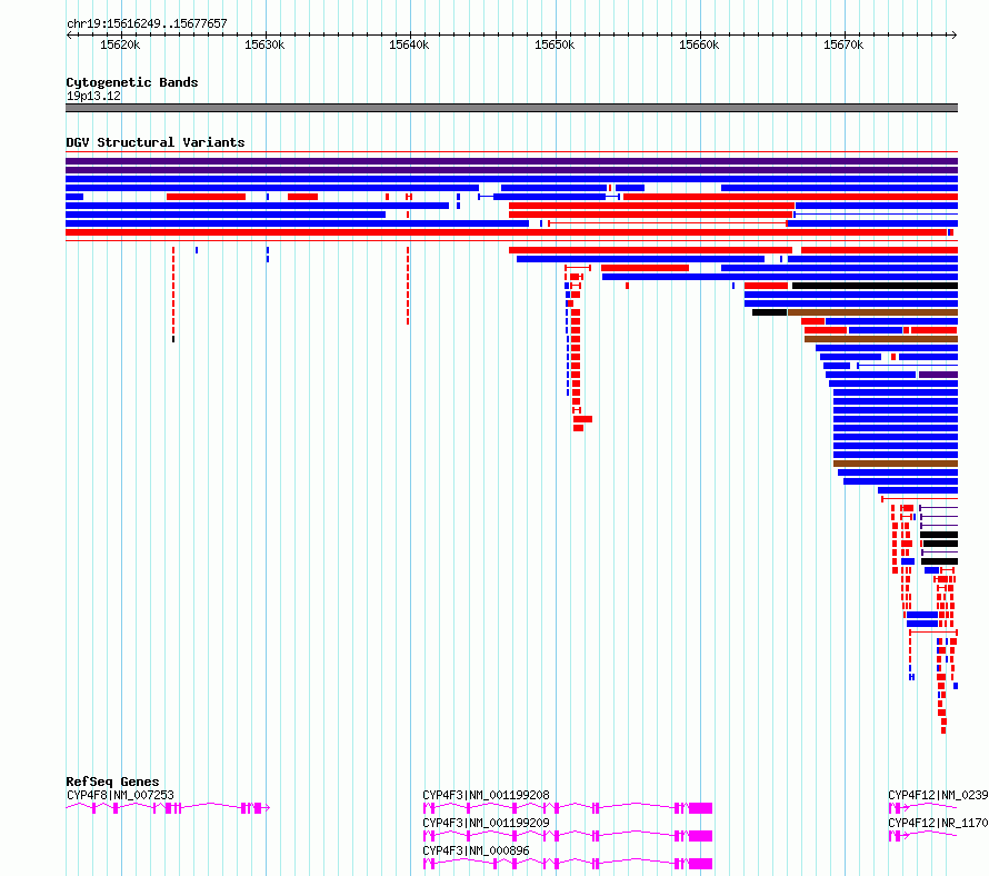 Variant DetailsVariant: essv6917097| Internal ID | 10024901 | | Landmark | | | Location Information | | | Cytoband | 19p13.12 | | Allele length | | Assembly | Allele length | | hg38 | 61409 | | hg19 | 61408 |